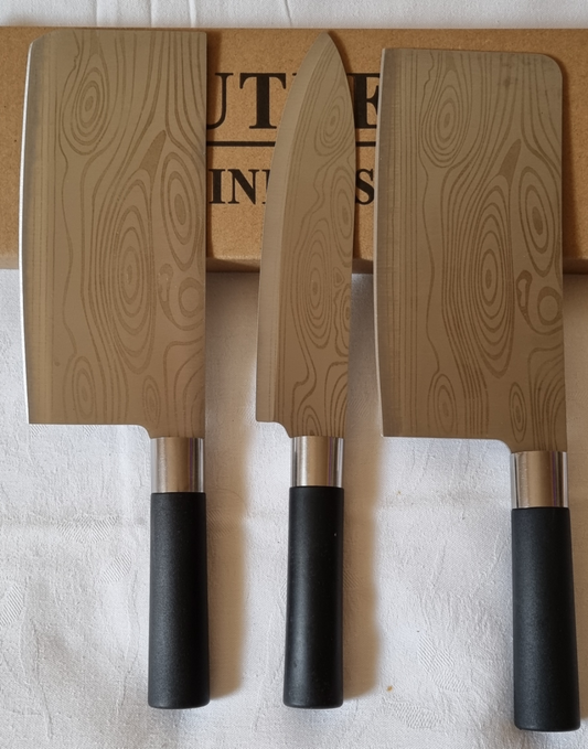 3 Profi Küchenmesser Set Edelstahl Damaskus Muster