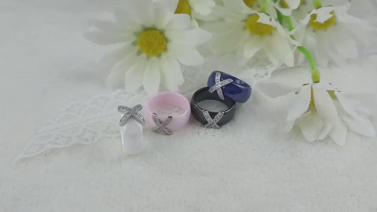 KERAMIK Ring STRASS silber Fingerring weiß schwarz rosa LUXUS +++ AUSWAHL